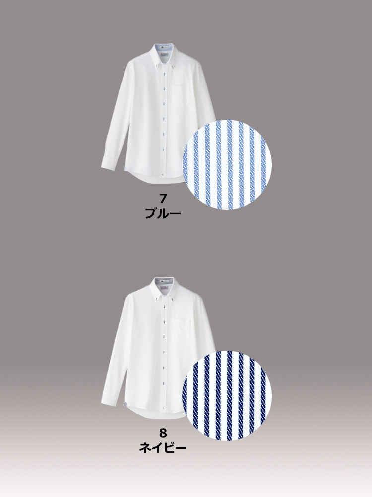 ●機能:ストレッチ、吸水速乾、台襟内側・袖口剣ボロ下側ストライプ柄使用、
