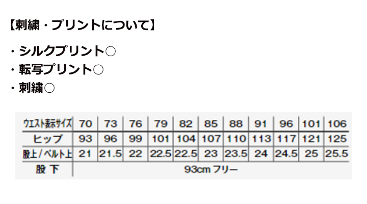 サイズ、刺繍・プリント加工対応