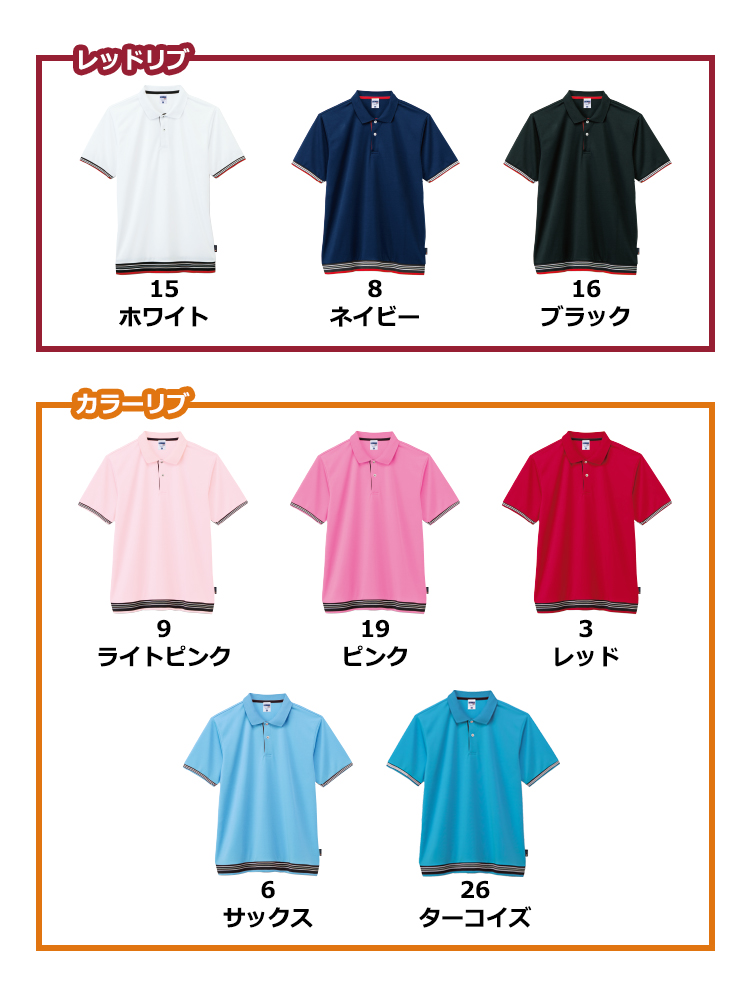 4.3oz 裾ラインリブドライポロシャツ(ポリジン加工)