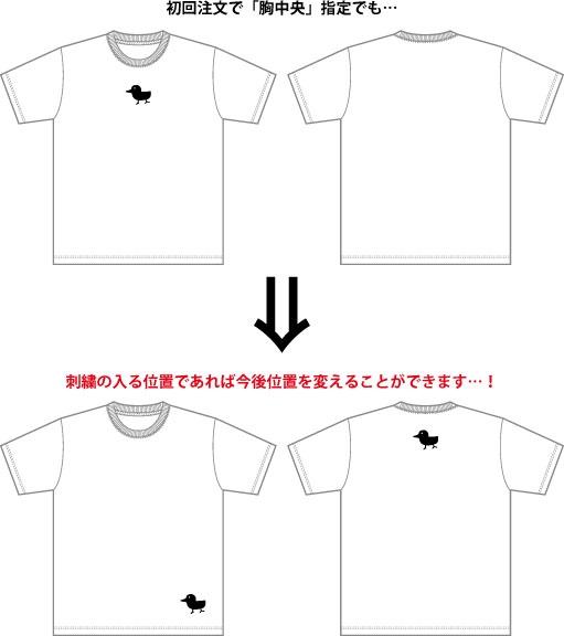 刺繍は「型」を作れば、様々な位置に併用することが可能です!